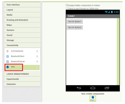在此之后,點擊“連接性”并在主屏幕上拖放web組件。