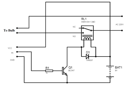 由晶體管、二極管和電阻組成的小型驅(qū)動電路用于配置繼電器。晶體管用于放大電流,電阻器用于向晶體管提供偏置,在晶體管關(guān)斷的情況下,二極管用于防止反向電流流過,這里我們使用6V繼電器模塊。
