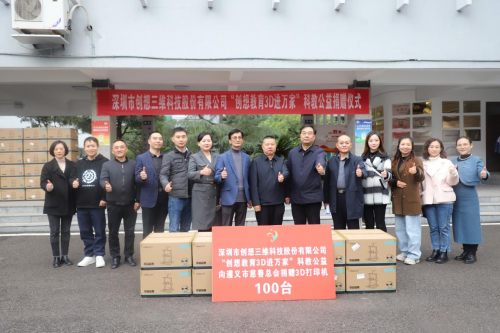 11月18日,深圳市創(chuàng)想三維科技股份有限公司“創(chuàng)想教育3D進萬家”科教公益捐贈儀式在貴州航天工業(yè)學校順利舉行。創(chuàng)想三維通過遵義市慈善總會向遵義市多所學校共捐贈了100臺3D打印機及配套耗材100套,助力當?shù)亟逃Y源優(yōu)化與科技教育普及。