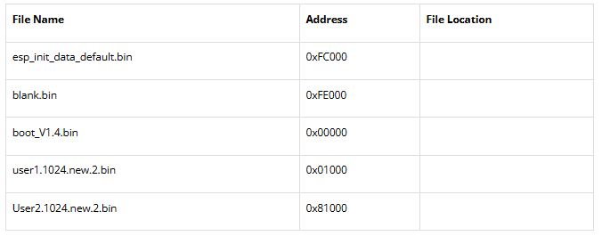 現(xiàn)在,為了配置下載路徑,請(qǐng)按照給定的順序從固件文件夾中包含具有給定地址的文件。