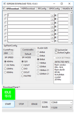 步驟3:現(xiàn)在,將打開(kāi)一個(gè)對(duì)話框,如上圖所示。在開(kāi)始閃爍ESP8266之前,需要先設(shè)置好參數(shù)和下載路徑。