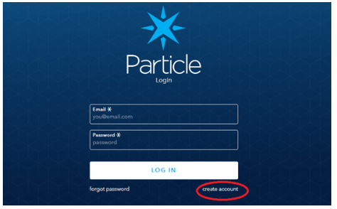 登錄到粒子云,點(diǎn)擊創(chuàng)建帳戶,并在下一個(gè)窗口填寫所需的所有詳細(xì)信息,然后點(diǎn)擊“創(chuàng)建帳戶”。