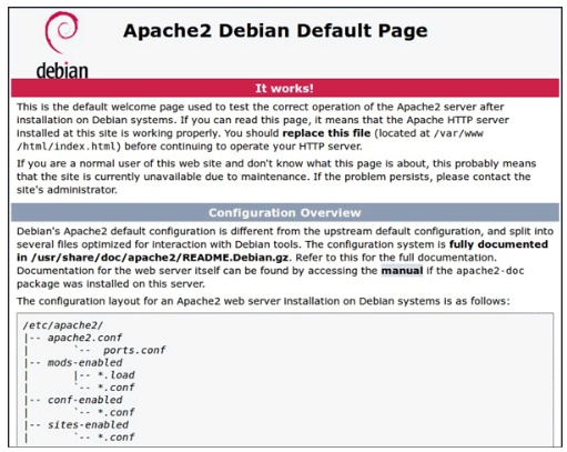 在Pi上或從網(wǎng)絡(luò)上的另一臺計算機上瀏覽到默認網(wǎng)頁,您將看到以下內(nèi)容: