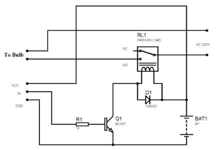 由晶體管、二極管和電阻器組成的小型驅(qū)動(dòng)電路用于配置繼電器。其中晶體管用于放大電流,電阻器用于為晶體管提供偏置電壓。當(dāng)晶體管關(guān)閉時(shí),二極管用于防止繼電器的反向電流。在這個(gè)項(xiàng)目中,我們使用了6V繼電器模塊。