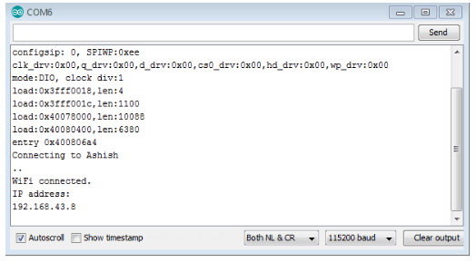 現(xiàn)在打開你的串行監(jiān)視器,按下ESP32的重置按鈕,現(xiàn)在你的ESP開始連接到你的網(wǎng)絡(luò),一旦連接,它會(huì)給你這個(gè)ESP的IP。