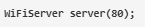 接下來,聲明一個(gè)WiFi Server庫的對(duì)象,這樣我們就可以訪問它的函數(shù)了。所形成的實(shí)例的參數(shù)將是端口號(hào),因?yàn)镠TTP的默認(rèn)端口號(hào)是80,所以我將使用這個(gè)值。