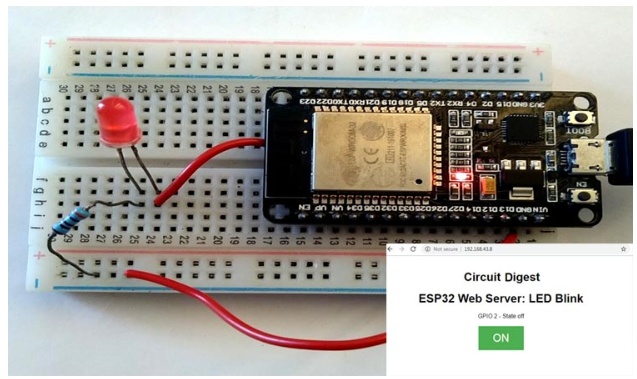 通過USB電纜將ESP32連接到PC上,并如上所述制作電路,這里我使用的是GPIO2,您可以根據(jù)您的需要使用。