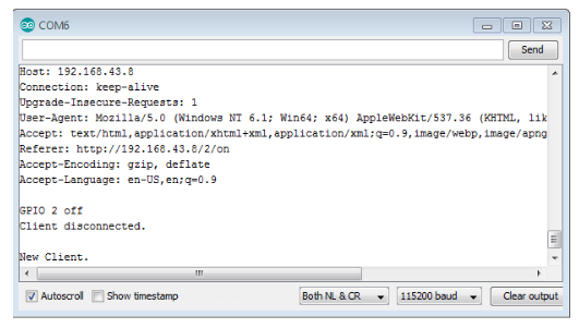 從這個(gè)網(wǎng)頁,你可以控制你的LED,你可以看到在串行監(jiān)視器以及后臺(tái)發(fā)生了什么。