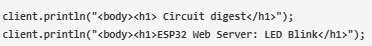在HTML中創(chuàng)建網(wǎng)頁對(duì)這個(gè)項(xiàng)目來說是最重要的,ESP32將發(fā)送一個(gè)響應(yīng)到你的瀏覽器,其中包含一些HTML代碼來構(gòu)建網(wǎng)頁。-這里我們已經(jīng)嵌入了完整的HTML代碼在Arduino代碼使用client.println。最后給出了完整的代碼。
