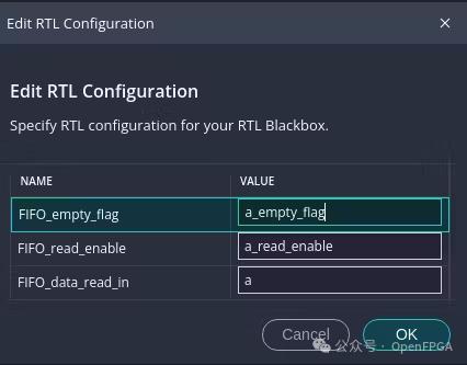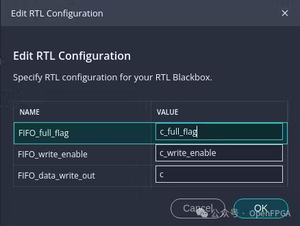 選擇端口方向并填寫RTL組配置(verilog模塊中的端口名稱)。