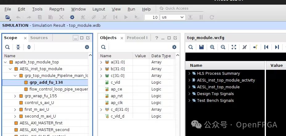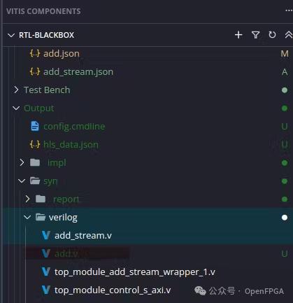 運行 C 綜合和 C/RTL 協(xié)同仿真。能夠在 HLS 模塊中看到打包的 add.v 文件。