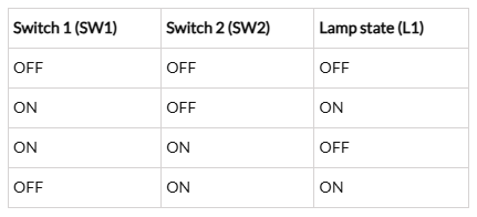 注:在三線制控制方式中,當(dāng)開(kāi)關(guān)處于同一狀態(tài)時(shí),燈處于OFF狀態(tài),如下電路所示: