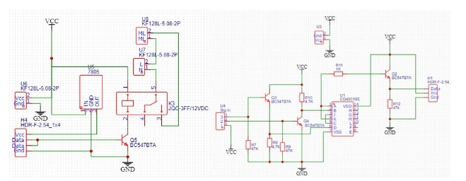 硬件邏輯純粹是使用邏輯門構建的,更具體地說,只是一堆NOR門(通用)。我們使用CD4001四路Nor門來開發(fā)順序邏輯并構建電路。因為我們是做無線的,所以我們用簡單的射頻模塊來發(fā)送開或關的信號給水泵。采用EasyEDA進行pcb設計。