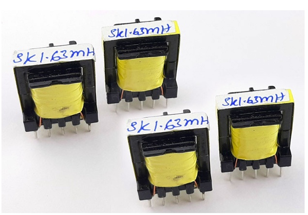 Core為E20/10/5,氣隙為0.68mm。初級電感為0.72mH。主匝比是113匝與31 AWG線。輔助線是22匝44 AWG線。輸出繞組采用19匝21 AWG線。根據(jù)變壓器設(shè)計(jì)工具提供的所有信息,我們從一家專業(yè)建筑公司訂購了變壓器,一周后我們收到了貨物,變壓器看起來像下圖所示。