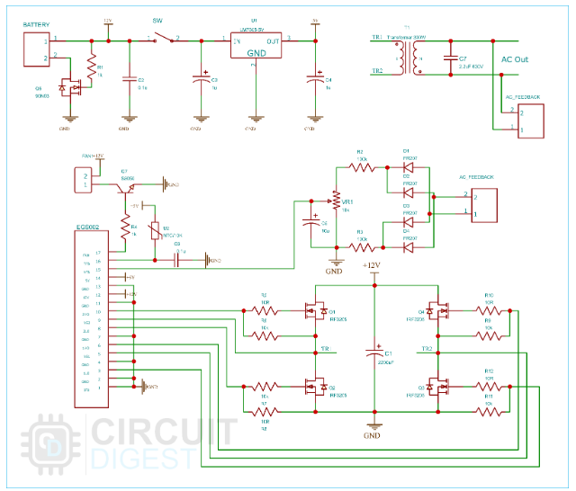 您可以通過增加更多的mosfet和更換變壓器來增加逆變器功率。構(gòu)建這個項目所需的所有文件都可以在下面的GitHub repo中找到。