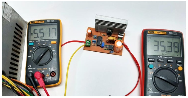 如您所見,上面的測試設置是用來測試電路的。ATX PC電源用于為電路供電,這就是輸入電壓保持在12V的原因。您還可以看到電路目前在升壓模式下運行,因此在這種情況下輸出保持在18伏,并且我已將最小負載附加到電路上,并且在這種情況下它正在繪制約100mA。