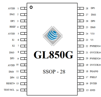 GL850G是本應(yīng)用的主要集成電路。它來自Genesys Logic的高級版本集線器解決方案,完全符合通用串行總線規(guī)范修訂2.0。