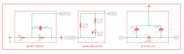第一個是復(fù)位電路。這是一個用于復(fù)位的簡單分壓器,其輸出電壓為4V。因此,當(dāng)5V變低時,它可以改變GL850G復(fù)位的閾值電壓。