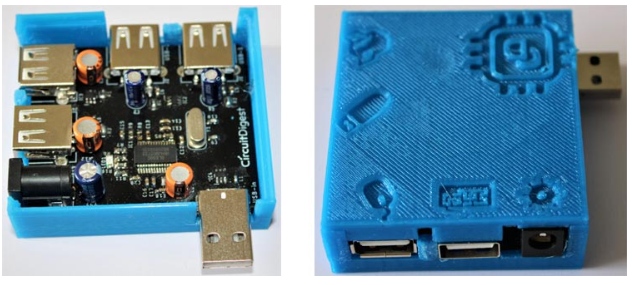 在組裝PCB并確保一切都很好后,我為PCB打印了一個外殼。為此,我測量了電路板的尺寸,所有的USB端口和桶千斤頂,為我的設(shè)置設(shè)計一個外殼。我的設(shè)計完成后看起來像下面這樣。