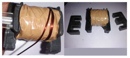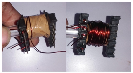 第二步:從引腳4開始使用43 AWG銅線進(jìn)行偏置繞組,并繼續(xù)進(jìn)行31圈,并在引腳5結(jié)束繞組。應(yīng)用3層聚酯膠帶。