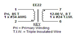 大多數(shù)情況下,變壓器并不是現(xiàn)成的,其參數(shù)與我們的設(shè)計(jì)完全相同。因此,在這里,我們將根據(jù)電路設(shè)計(jì)的要求設(shè)計(jì)我們自己的變壓器。下面是變壓器結(jié)構(gòu)示意圖。