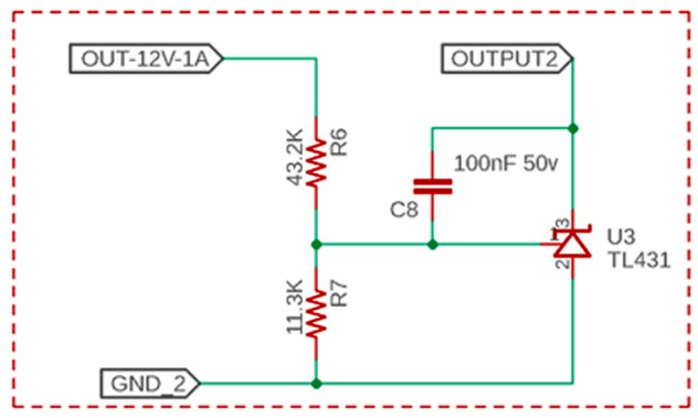 這是反饋部分。使用R6和R7設(shè)置電壓。TL431是一個可配置的齊納二極管,它控制反饋部分。