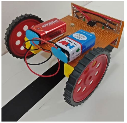 我們已經(jīng)組裝好了機(jī)器人,因?yàn)樗恍枰魏未a,所以是時(shí)候看看它的實(shí)際效果了。為此,我們所需要做的就是將機(jī)器人放在黑線的上方,并觀察它的動(dòng)作。