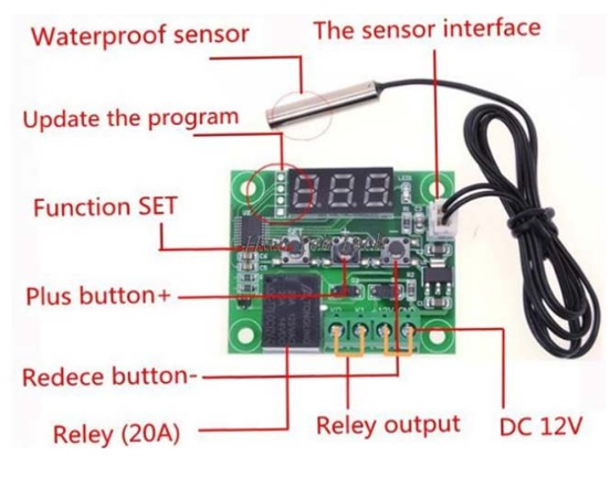 W1209恒溫器是我們恒溫箱的核心。這個恒溫器基本上是一個帶有STM微處理器的NTC,一個七段顯示器和一個繼電器。NTC溫度傳感器允許模塊根據(jù)溫度智能控制電氣設(shè)備。NTC熱敏電阻具有負溫度系數(shù),即電阻隨溫度升高而減小。該繼電器可以工作在最高240V交流電壓5A或14V直流電壓10A上電。溫度以攝氏度為單位顯示,在7段顯示器和繼電器的幫助下,狀態(tài)通過W1209模塊上的LED顯示。W1209的傳感器是一個10kNTC。恒溫器需要12伏特,主要用于繼電器,并有一個5伏特的調(diào)節(jié)器用于控制器電路。