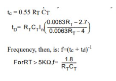 振蕩器波形和最大占空比:振蕩器時序電容,CT,由VREF通過RT充電,由內(nèi)部電流源放電。在放電時間內(nèi),內(nèi)部時鐘信號空白輸出到低電平。因此,RT和CT的選擇決定了振蕩器頻率和最大占空比。充放電次數(shù)由以下公式確定: