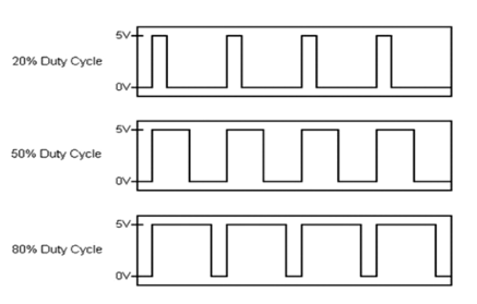 上圖顯示了不同占空比下的波形。我們可以很容易地說,更高的占空比意味著設備通電的持續(xù)時間更長。
