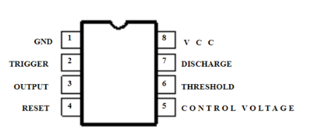 為了使系統(tǒng)在實際應用中工作,我們需要比人類更快地打開和關閉開關。因此,我們使用PWM脈沖發(fā)生器和晶體管作為開關來執(zhí)行任務。穩(wěn)定模式下的555定時器IC可用于為我們的操作生成PWM輸出。IC 555在連接到它的無源和有源組件的幫助下產(chǎn)生大約30 KHz的頻率。NE555的引腳圖如下: