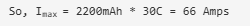 這意味著2200mAh 30C 3S LiPo可以提供高達(dá)66安培的最大電流。
