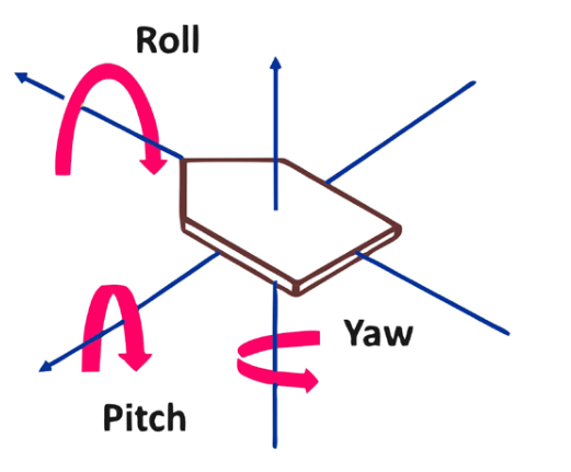 在了解四旋翼飛行器的飛行動(dòng)力學(xué)之前,我們需要了解四旋翼飛行器角運(yùn)動(dòng)的三個(gè)主要參數(shù),即偏航、橫搖和俯仰。