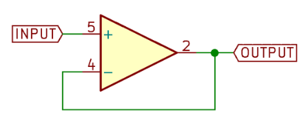負反饋最簡單的例子是運放從動器。在這種情況下,反相輸入連接到輸出,非反相輸入作為信號輸入。