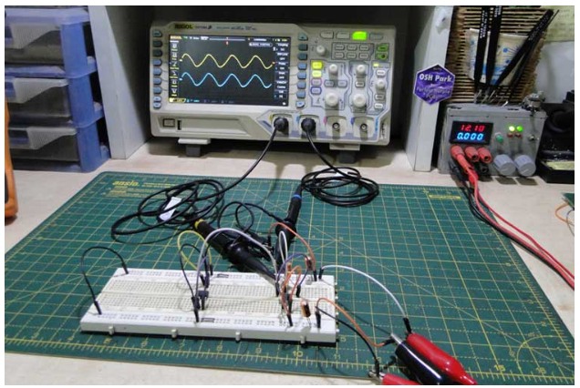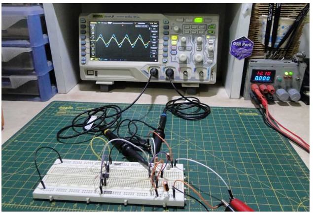 為了演示,該電路使用LM741運算放大器構建,由±12V軌道供電,三角形波輸入(來自上一篇文章中制作的三角形波發(fā)生器)。