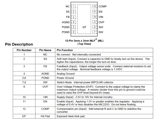了解MIC2253的引腳描述: