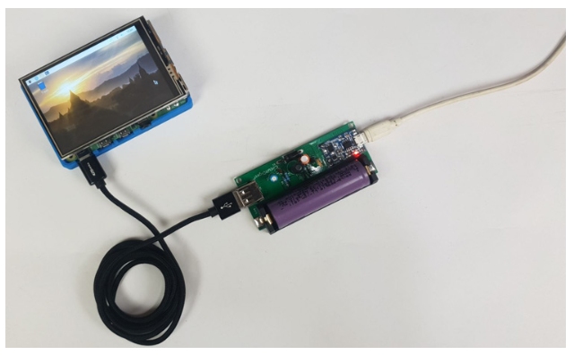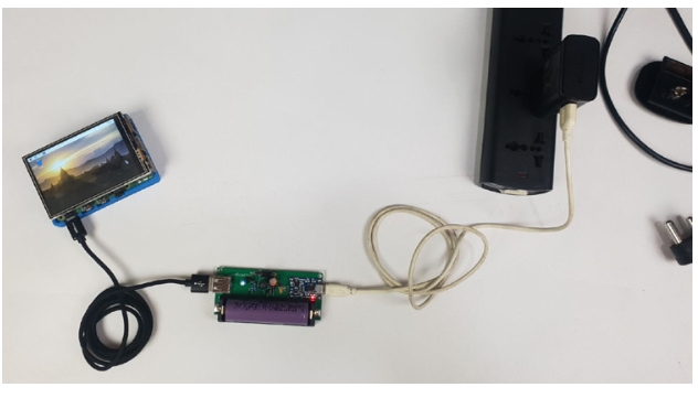 可以清楚地看到,Rpi模塊從3.7V鋰離子電池中獲得5V升壓電源。紅色LED也可以被觀察到發(fā)光,因?yàn)殡姵啬壳罢诔潆?,同時(shí)為Rpi提供電源。一旦電池充滿電,我們將觀察到藍(lán)色LED,然后我們準(zhǔn)備將直流適配器移到TP4056。
