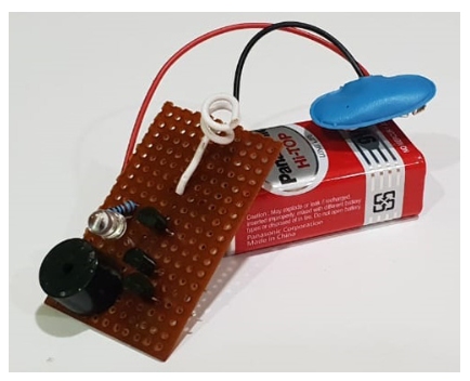 銅線被擰成一團(tuán)作為天線,可以探測(cè)到周圍的任何電磁感應(yīng),并產(chǎn)生一個(gè)非常低電平的信號(hào)。之后,一系列晶體管開(kāi)始發(fā)揮作用。來(lái)自天線的信號(hào)可能以納米安培為單位進(jìn)入晶體管Q1的基極,其中Ic = β × Ib。由于β (β)值非常大(約110-800),這反過(guò)來(lái)又給了我們一個(gè)更大的集電極到發(fā)射極電流作為輸出。這個(gè)過(guò)程再次重復(fù),晶體管Q1的發(fā)射極進(jìn)入晶體管Q2的基極。因此,進(jìn)一步增加當(dāng)前水平β (β)倍。晶體管Q3充當(dāng)開(kāi)關(guān),當(dāng)電流供應(yīng)到晶體管Q3的基端時(shí),開(kāi)關(guān)LED和蜂鳴器。