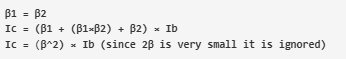 由于使用兩個(gè)相同的NPN晶體管構(gòu)成達(dá)靈頓對(duì),則Beta1(β1)/hfe1和Beta2(β2)/hfe2相等,則電流增益為:
