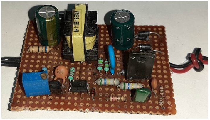 對于這個演示,電路是在原理圖的幫助下在一個虛線板上構造的;請注意,我是在我的工作臺上測試電路進行演示,所以我沒有包括許多保護功能,如過壓保護和短路保護。如果你用它來給其他東西供電,建議打開那些保護和濾波電路。