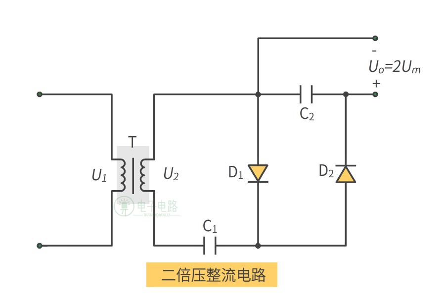 需要注意的是,倍壓整流電路輸入的是交流電,輸出的是直流電,一般是使用升壓變壓器將電壓升高,升壓后再輸入到倍壓整流電路。相信大家對交流電峰值電壓與有效值之間的關(guān)系應(yīng)該是懂的,這里就不詳細(xì)講述了。
