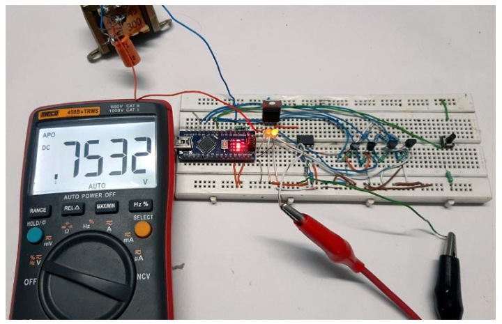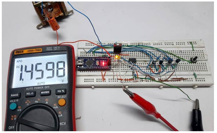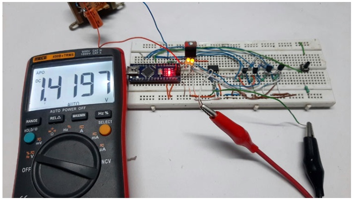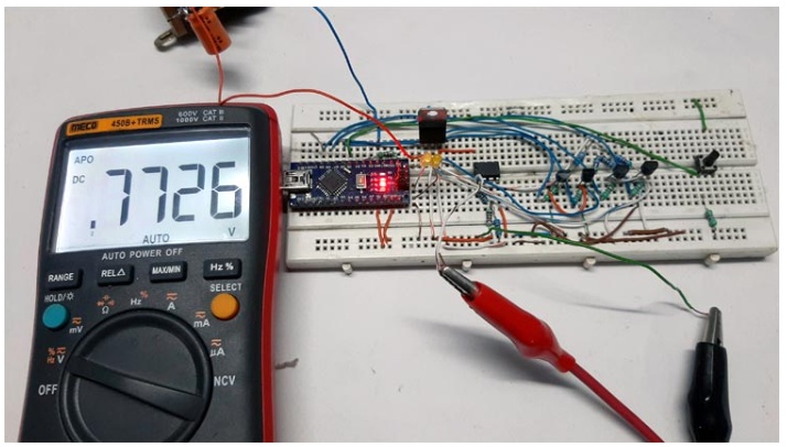 在這里,Arduino Nano用于控制晶體管的基極和mosfet的柵極,萬用表用于顯示電壓水平,因為Arduino的內(nèi)置ADC在測量低電壓水平時做得非常差。