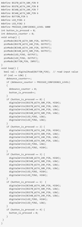 注意!請注意,我添加了兩個led只是為了測試,你無法在實際的原理圖中找到它們,它顯示二進制代碼來顯示哪個引腳是活躍的