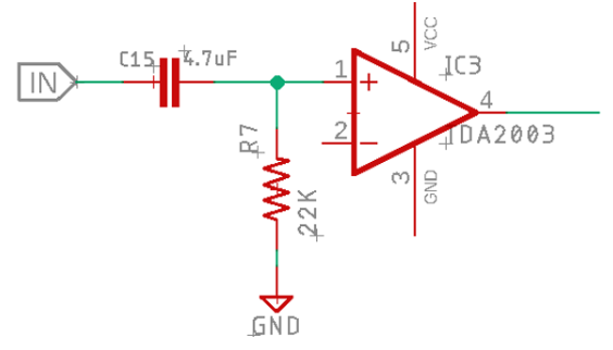 電容器C1充當直流阻塞電容器,從而降低噪聲。