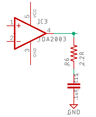 輸出濾波器或通常稱為Zobel網(wǎng)絡(luò)防止揚聲器線圈和電線產(chǎn)生振蕩。它還拒絕從揚聲器到放大器的長導(dǎo)線接收的無線電干擾;這也可以防止他們進入反饋循環(huán)。