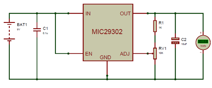 在這個(gè)項(xiàng)目中,我們將使用MIC29302來(lái)構(gòu)建LDO穩(wěn)壓器或低差穩(wěn)壓器電路。輸出電壓可以使用調(diào)節(jié)引腳上的高值或低值電阻來(lái)改變。