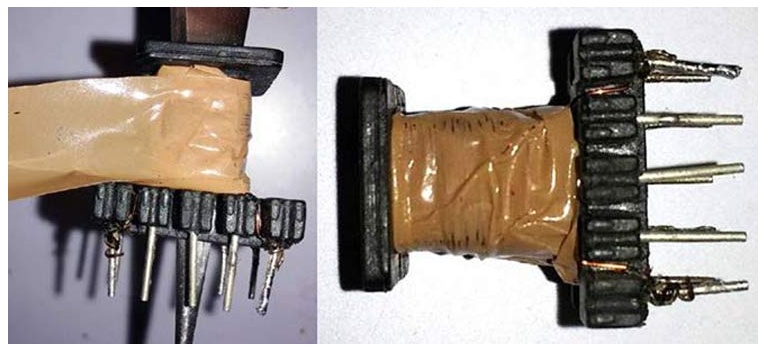 一旦初級(jí)和次級(jí)繞組完成和管道膠帶被使用,我的變壓器看起來(lái)像如下所示