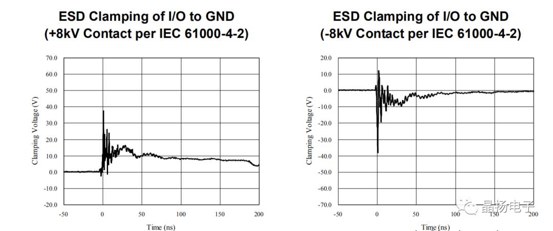3、ESD鉗位電壓是比較重要參數(shù)。較低的鉗位電壓表示更好的保護(hù)性能