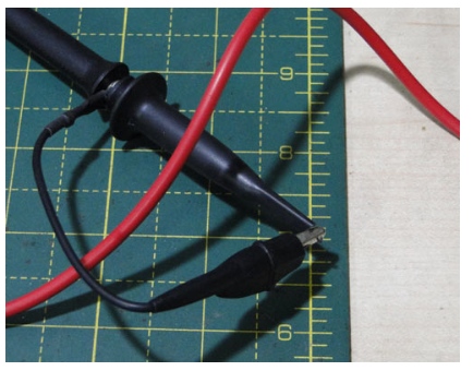 這種方法很像使用電流探針。將探頭接地線繞在攜帶待測(cè)電流的導(dǎo)線上,然后將接地夾連接到探頭尖端。