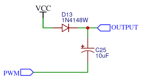 讓我們假設(shè)555定時器的輸出引腳3在啟動期間為低電平。這導(dǎo)致電容器通過二極管充電,因為負(fù)極現(xiàn)在接地。當(dāng)輸出高時,負(fù)引腳也高-但是由于電容上已經(jīng)有電荷(因為二極管不能去任何地方),在電容的正極看到的電壓實際上是輸入電壓的兩倍。
